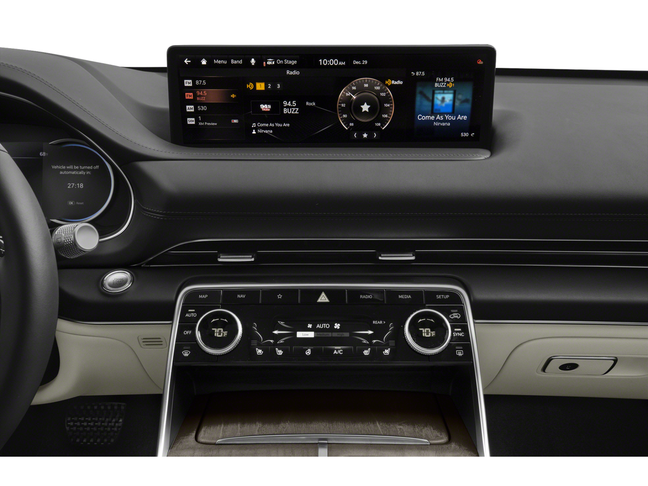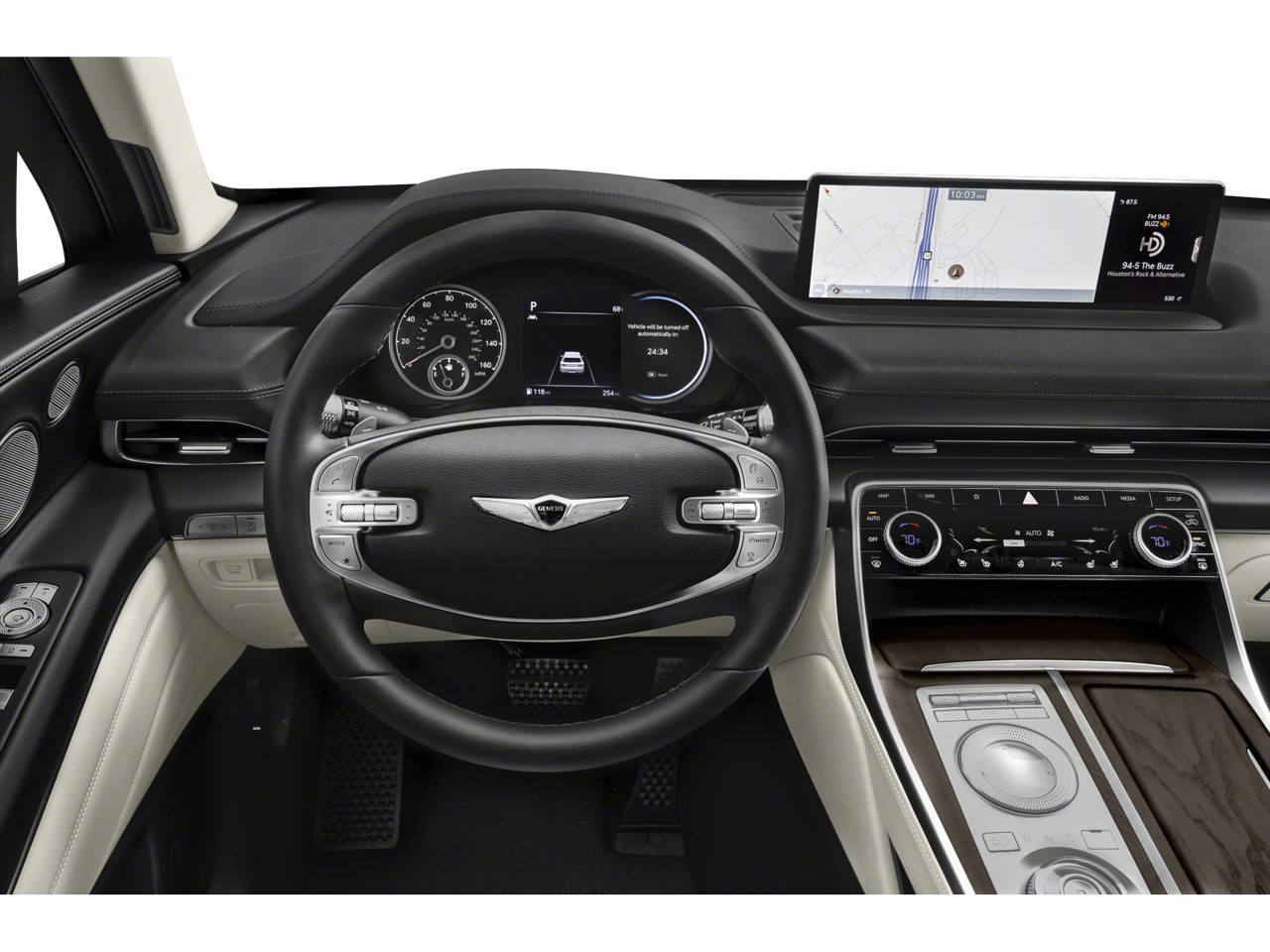 - Radio: AM/FM/SiriusXM/HD Premium Audio System -inc: internal amplifier, integrated navigation, 14.5" HD LCD screen, Apple Carplay and Android Auto, Bluetooth® hands-free phone system w/audio streaming, steering wheel controls, 2 front and 2 rear USB ports, 2 12v power outlets and Genesis Connected Services