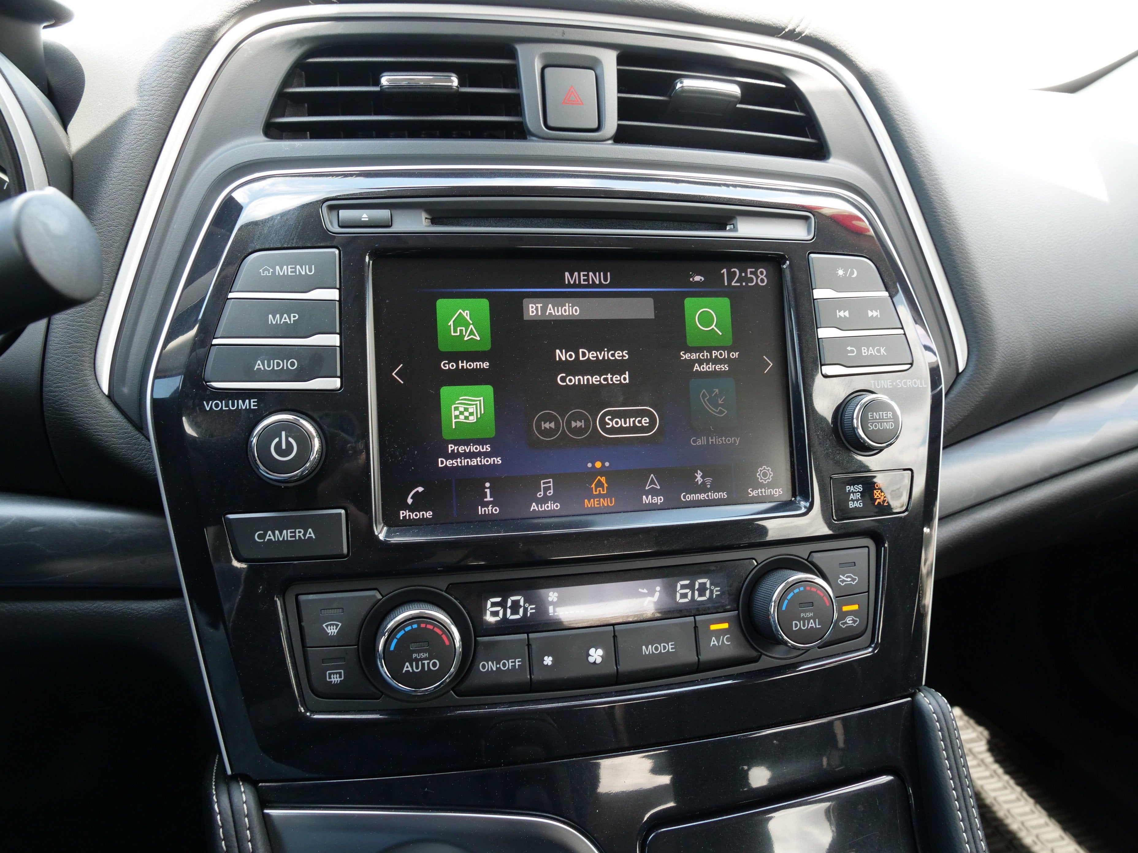 - Radio: AM/FM/CD Bose Audio System -inc: MP3/WMA/AUX reader, 11 speakers, NissanConnect featuring 8" color display w/multi-touch control, Apple CarPlay, Android Auto, 2 front illuminated USB connection ports (1 Type-A, 1 Type-C), Bluetooth® hands-free phone system, hands-free text messaging assistant, streaming audio via Bluetooth®, voice recognition, Siri Eyes Free, SiriusXM radio, SiriusXM advanced audio features, NissanConnect services powered by SiriusXM, Wi-Fi hotspot, Nissan door to door navigation, SiriusXM Traffic, SiriusXM Travel Link, display commander and 7" Advanced Drive Assist Display (ADAD)